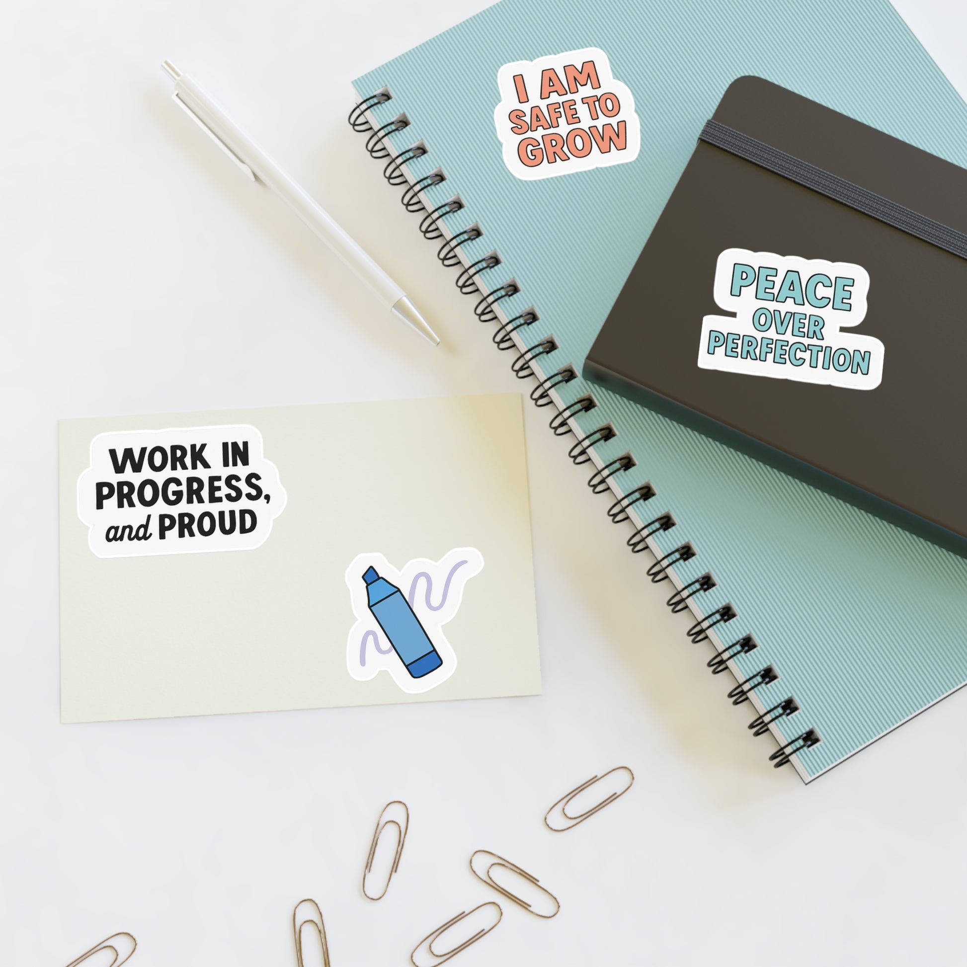 This set brings calm energy and career motivation together—perfect for your journal, workspace, water bottle, or anywhere you need a splash of creativity and clarity. Each sticker features an affirmation designed to help you slow down, breathe deeper, and remind yourself you’re growing—on purpose.