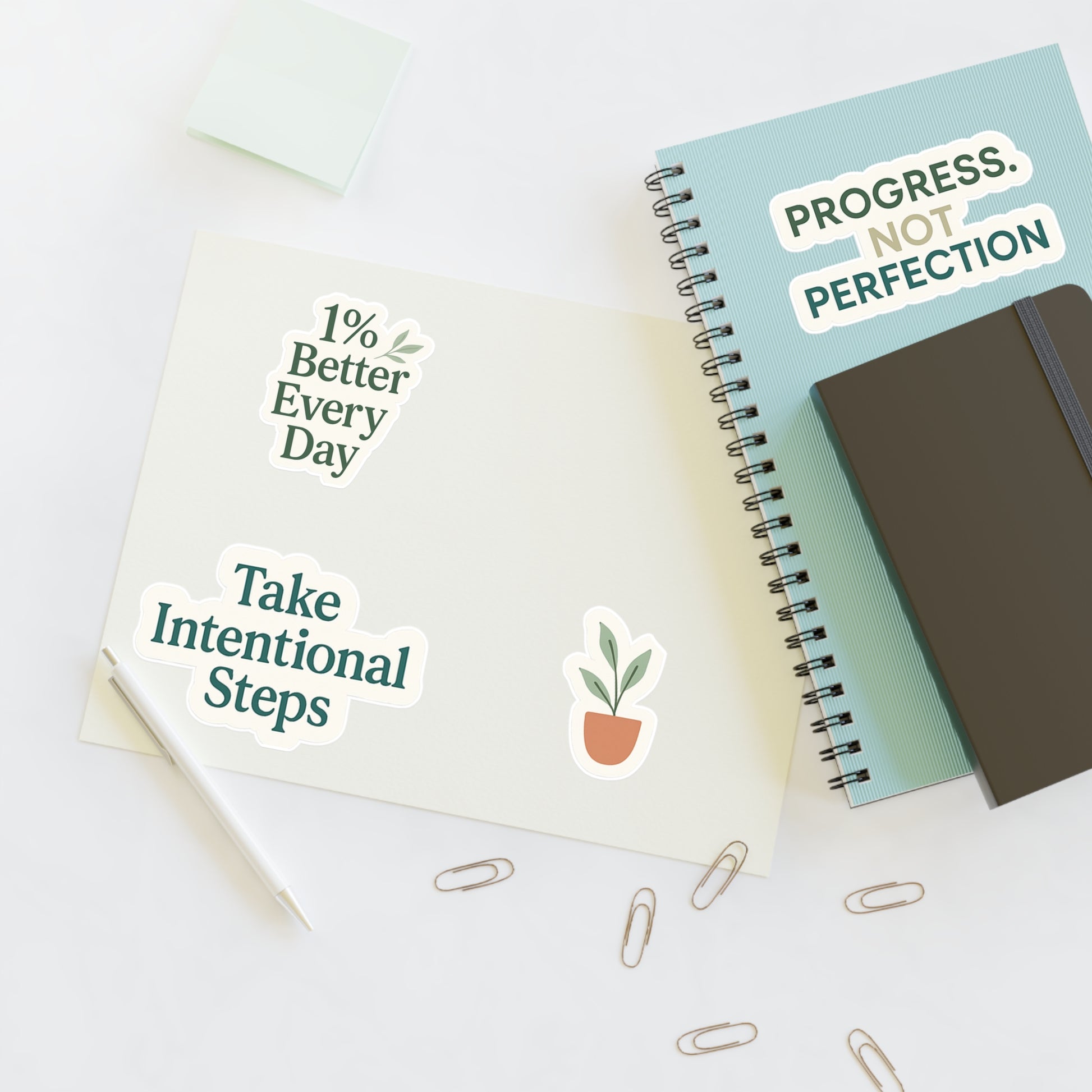 Small steps. Big growth. This motivational sticker set is your daily reminder that progress is worth celebrating—even the tiny wins. Perfect for your journal, planner, water bottle, or workspace, each sticker is designed to keep you grounded in purpose, not pressure.Product features